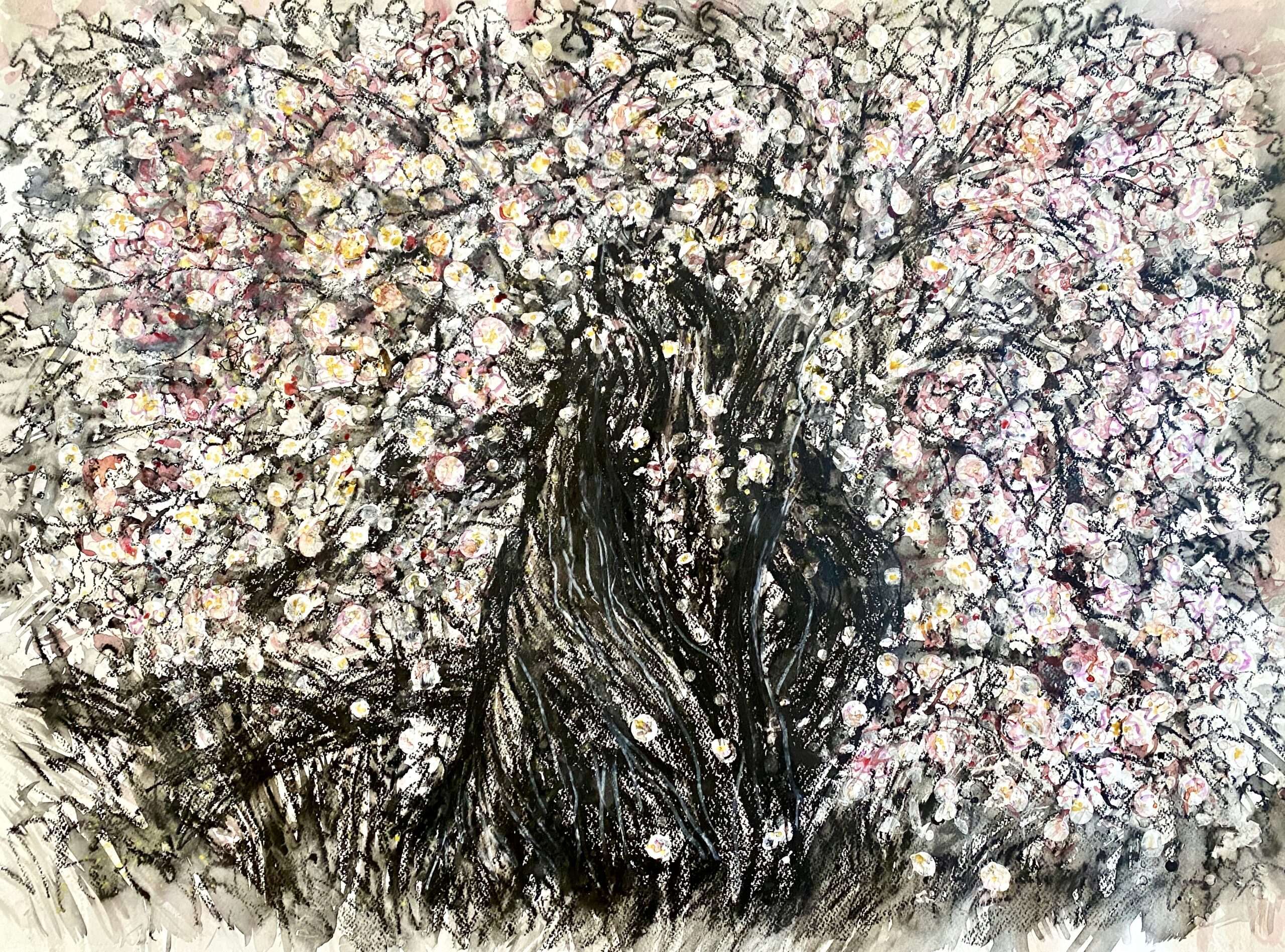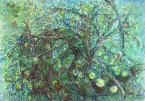 Erst nach 2000, als mein Apfelbaum während eines Sturms abgebrochen war, begann ich damit, ihn regelmäßig zu porträtieren. Bis heute fasziniert mich dieser Baum, der trotz seiner gravierenden Verletzung jeden Frühling wieder blüht und sich im Herbst unter der Fülle seiner Äpfeln biegt.